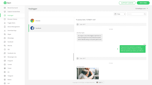 Spyic keylogger feature lets you record all the keystrokes made on the target device. The app can record everything including usernames and passwords used on the target device.